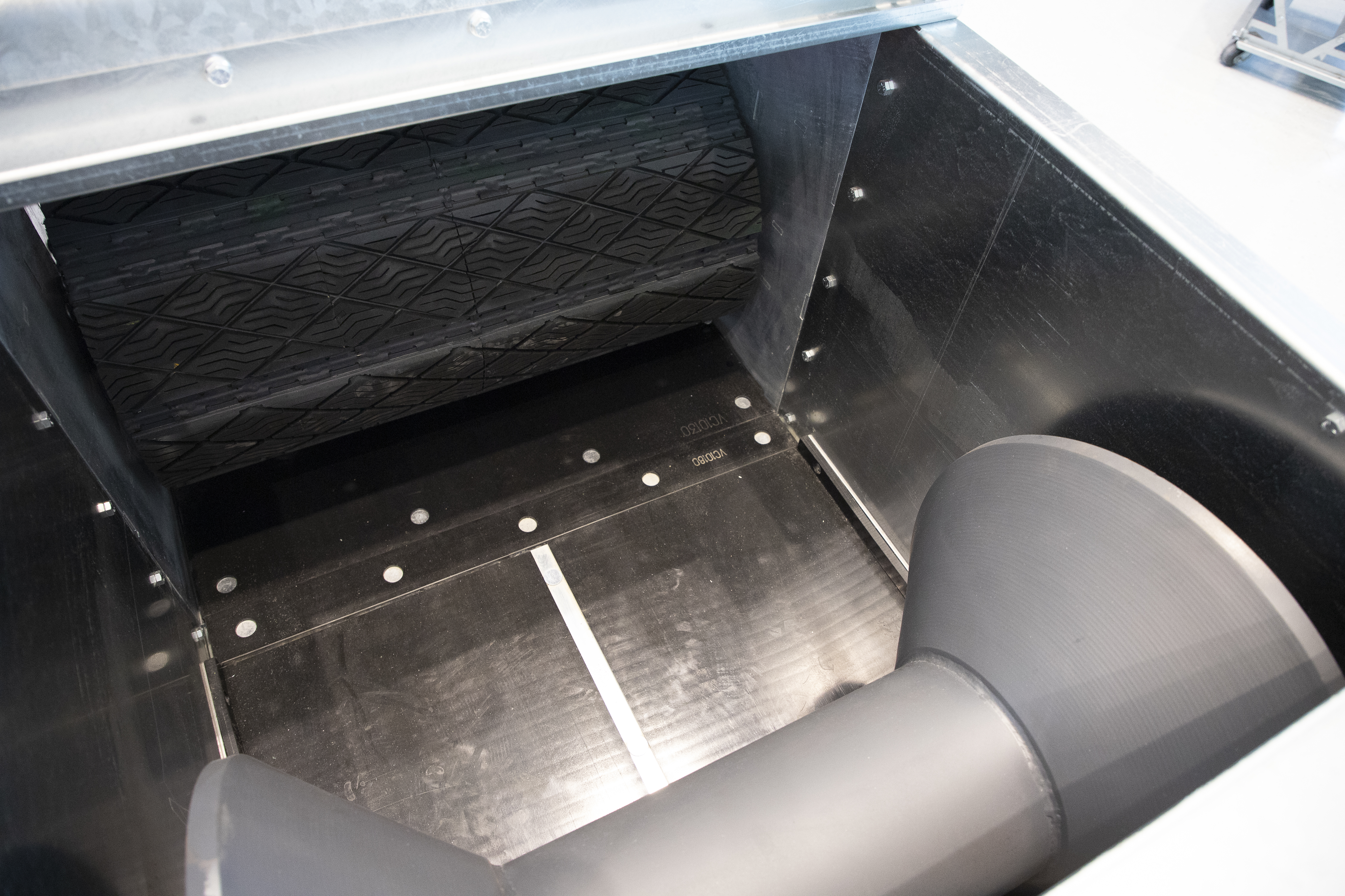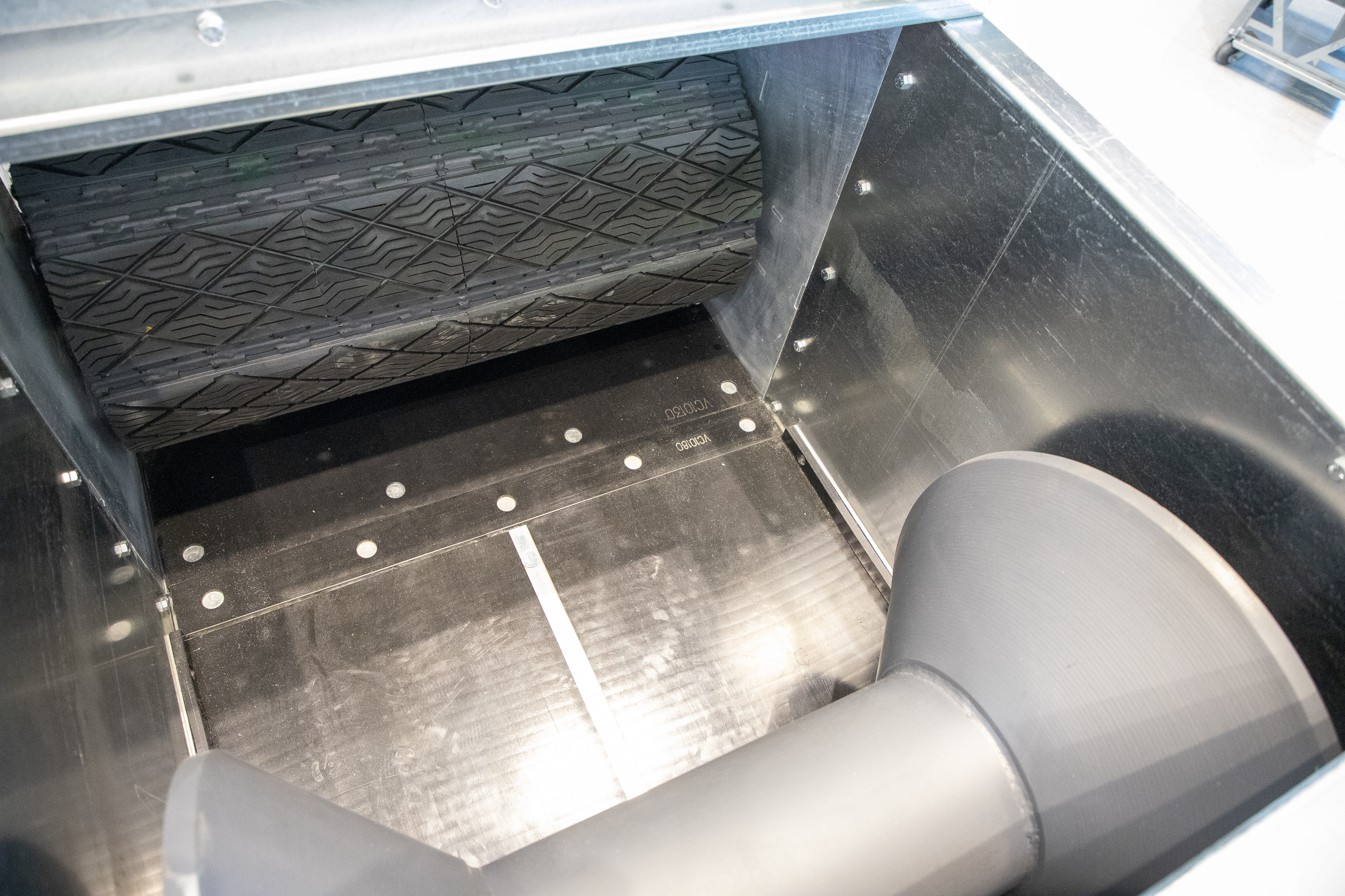 A ½" antistatic UHMW bottom liner and tongue-and-groove floating liner attachment promote smooth belt movement, reduced friction, and minimized static—key advantages for reliable grain conveying. The conveyor’s 5' spaced conical idlers, spherical roller bearings, and 1¼" stub shaft idler connection support consistent belt tracking and efficient grain transfer across the system.